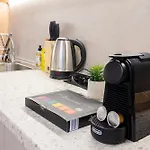 Гостите могат да използват минибар, кафе и чайни уреди, предоставени в този апартамент, както и пълно обзаведена кухня с кафе/чайни машини, хладилник и фурна. Централната автобаза е на кратко разстояние от Новия съвременен и уютен апартамент с безплатен паркинг. Освен това има много възможности за спорт, като стрелба с лък, планинско ходене и конна езда.